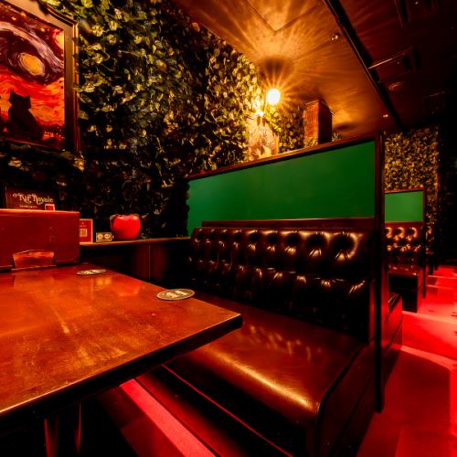 店内は、装飾にグリーンを使用し、森をイメージした心地よく落ち着く空間が広がっています◎まるで秘密の隠れ家のような、非日常の雰囲気を楽しんでいただけます♪さらに、お店の入り口には遊び心のある自動販売機が!初めての方は驚かれること間違いなしの、楽しい仕掛けにご注目ください。写真映えもバッチリです!